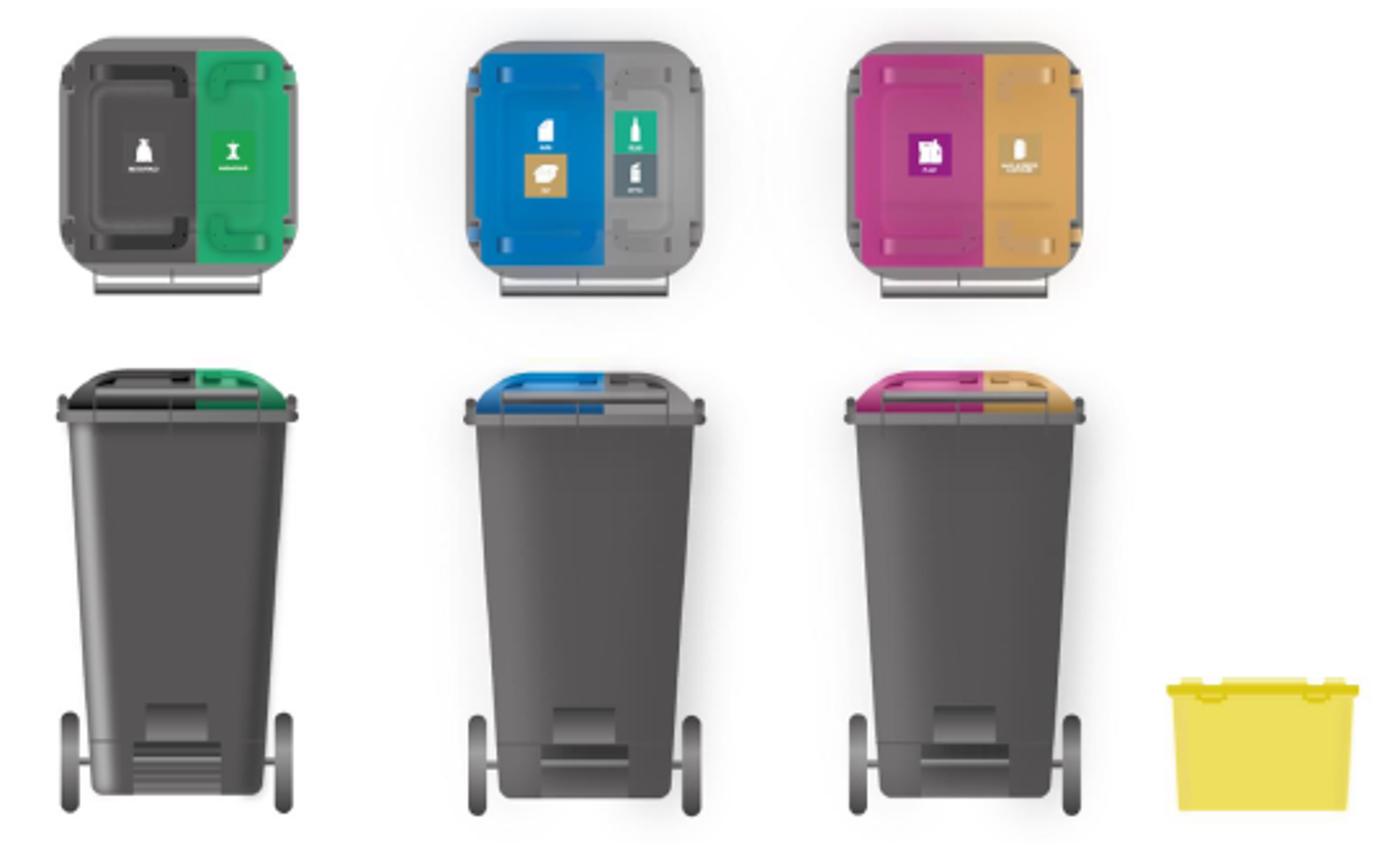 Beholder til madaffald kan være 190 l og 240 l. Beholderen på 240 l kan være delt eller udelt.