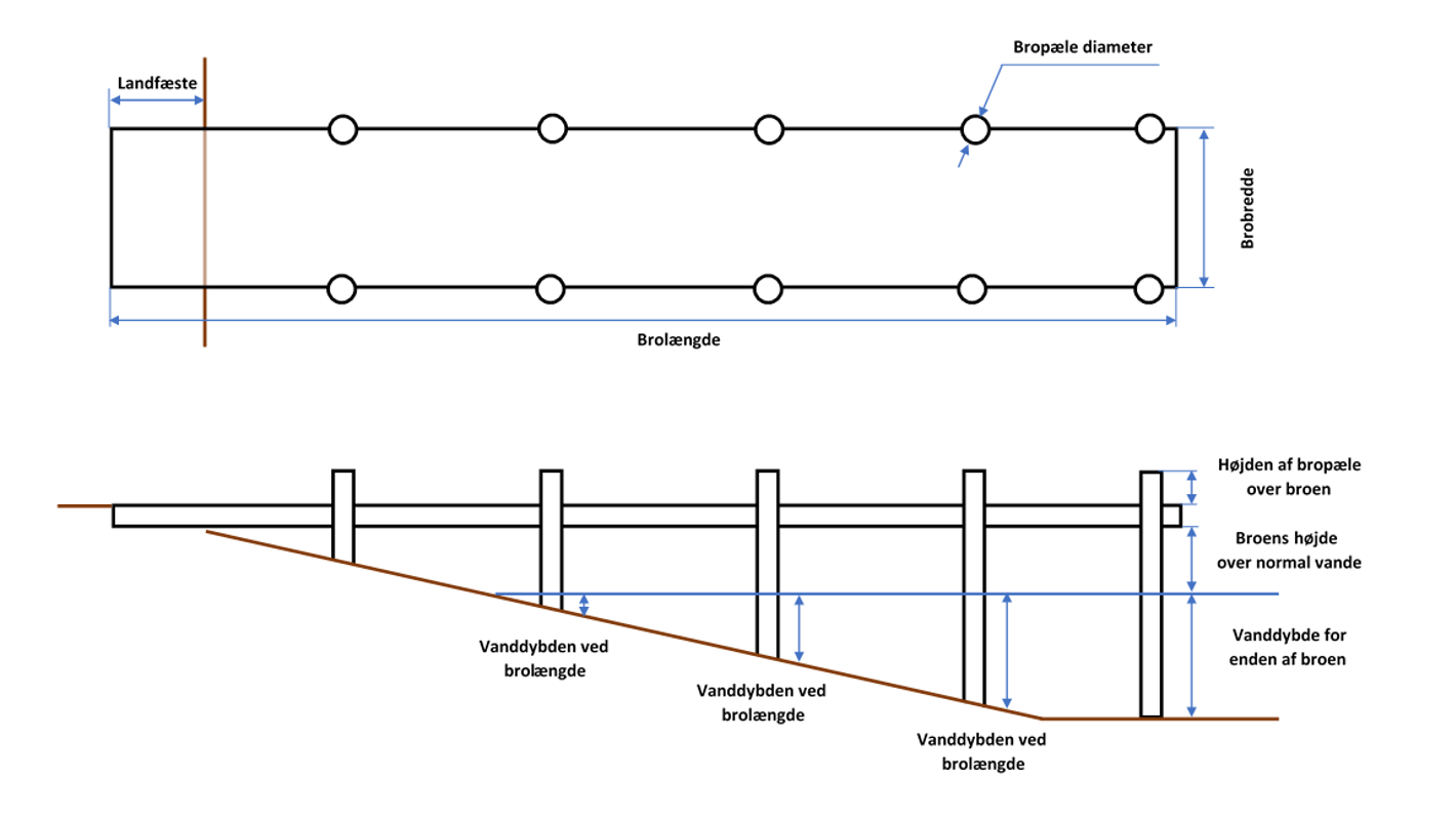 Plantegning og profiltegning af en bro, som du kan bruge som inspiration
